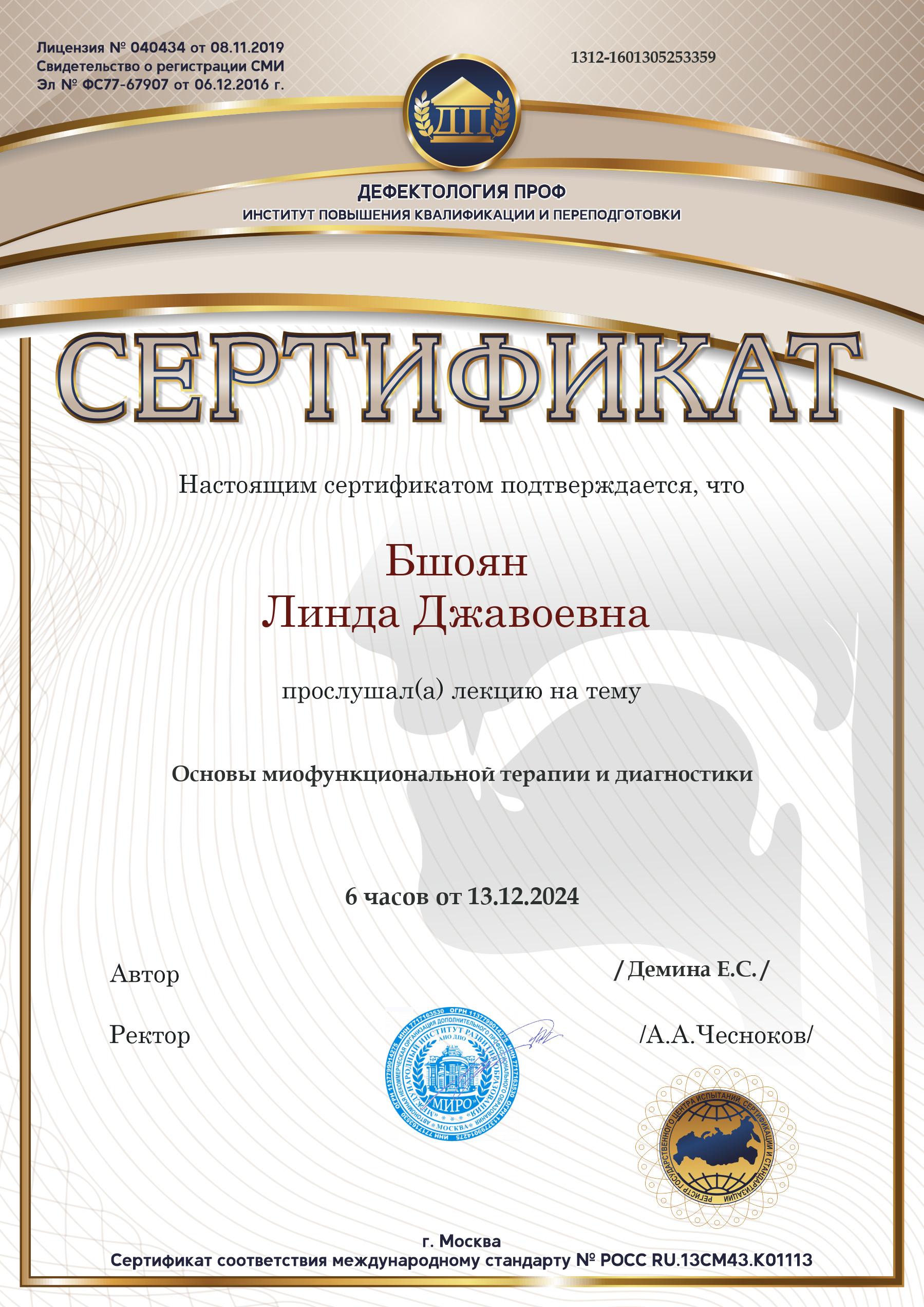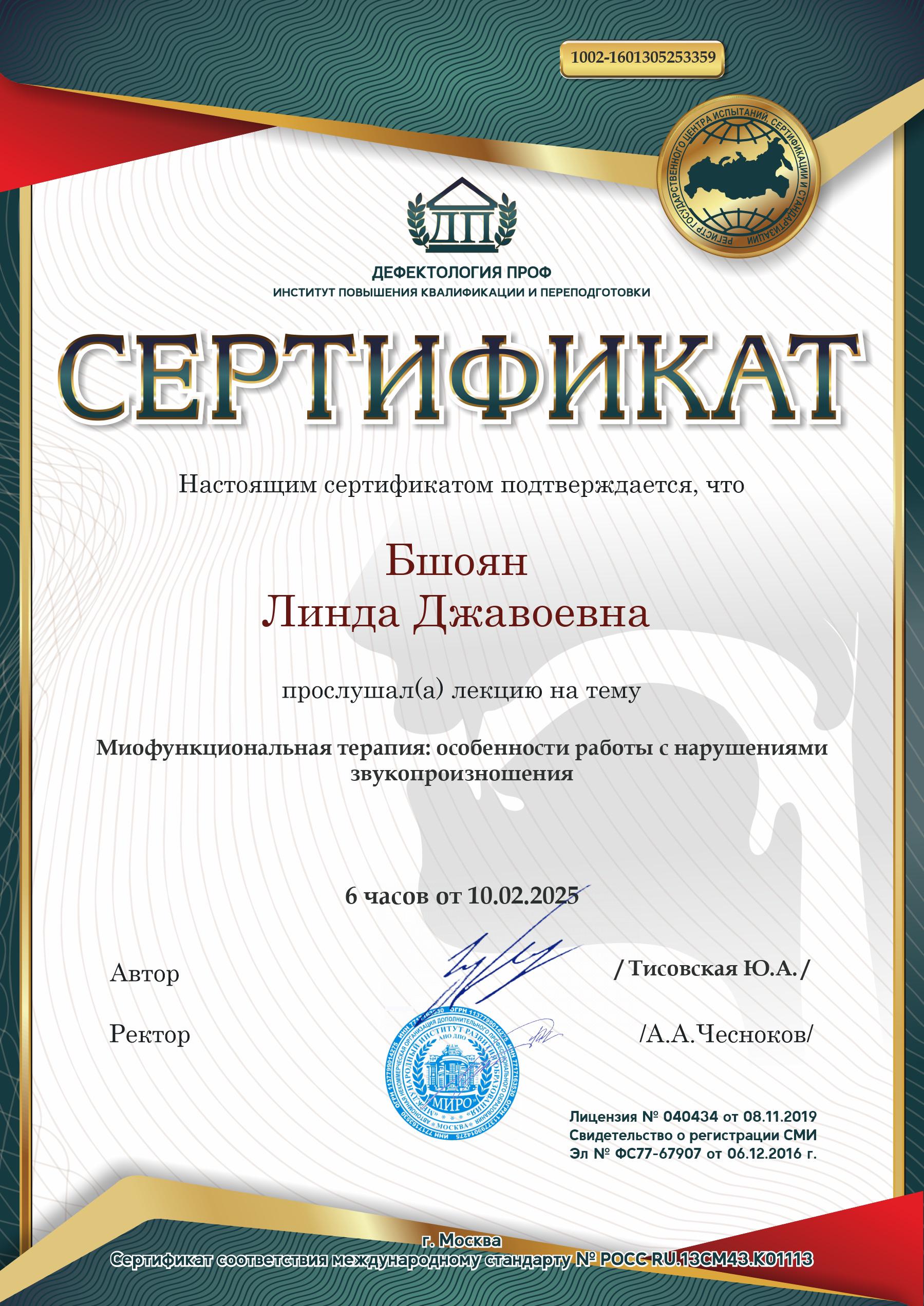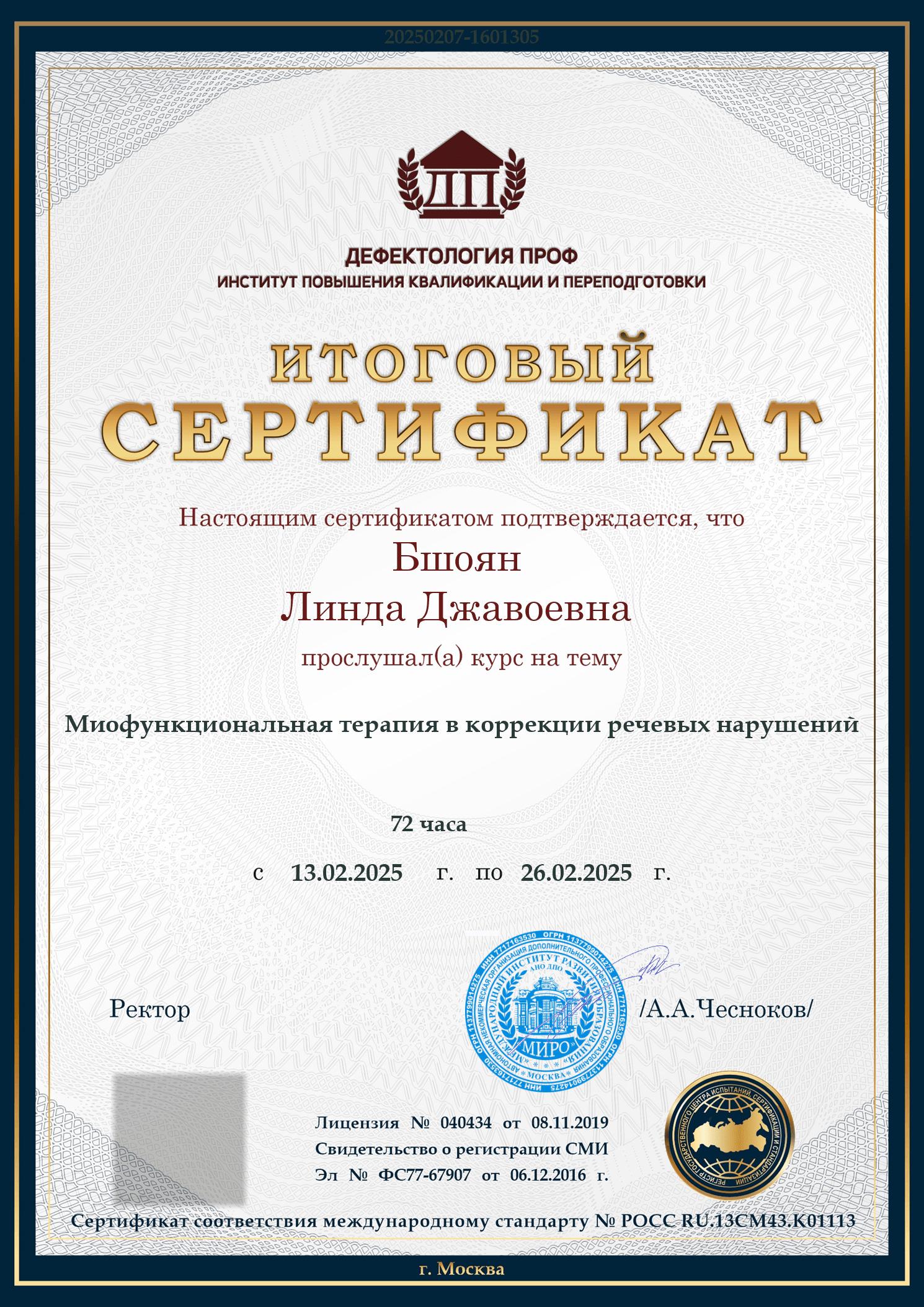 2025г — Курс «Миофункциональная терапия в коррекции речевых нарушений», Дефектология ПРОФ