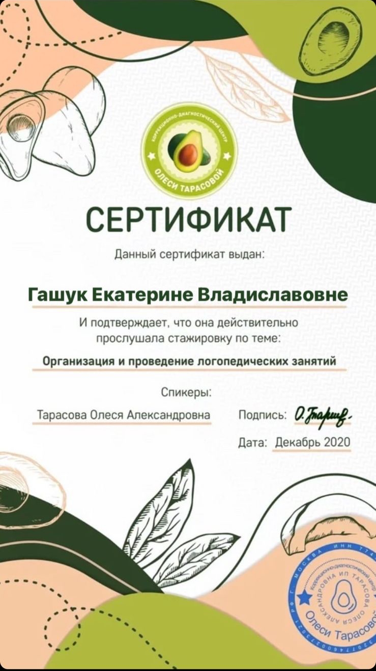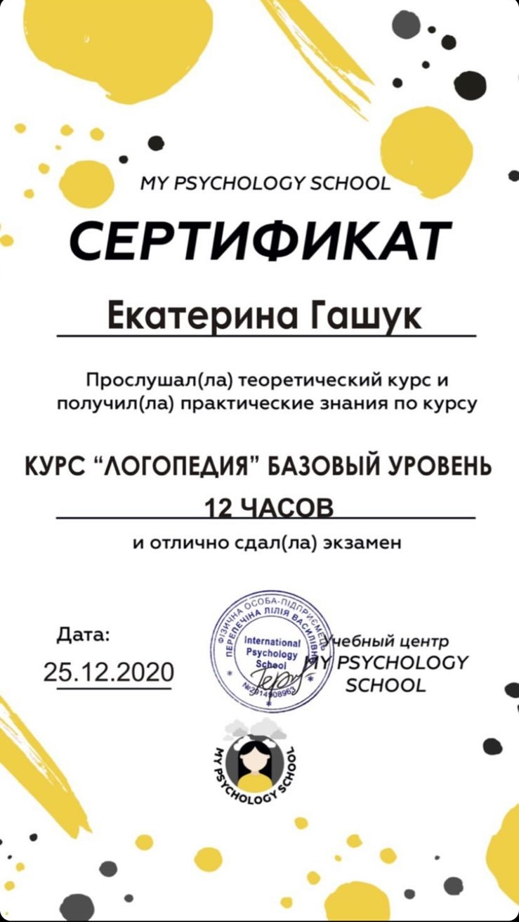 2020г — Курс «Логопедия. Базовый уровень.», УЦ MY PSYCHOLOGY SCHOOL