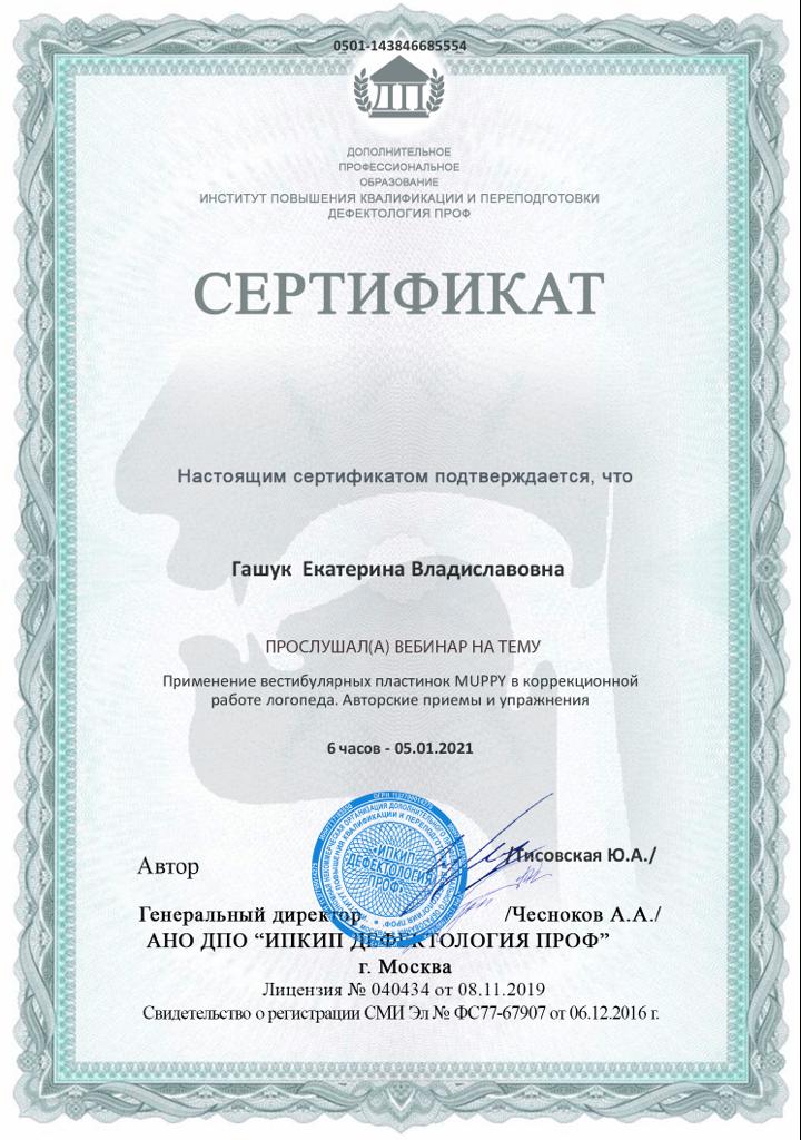 2021г — Вебинар «Применение вестибулярных пластинок MUPPY в корреляционной работе логопеда. Авторские приемы и упражнения», Дефектология ПРОФ, Тисовская Ю.А.