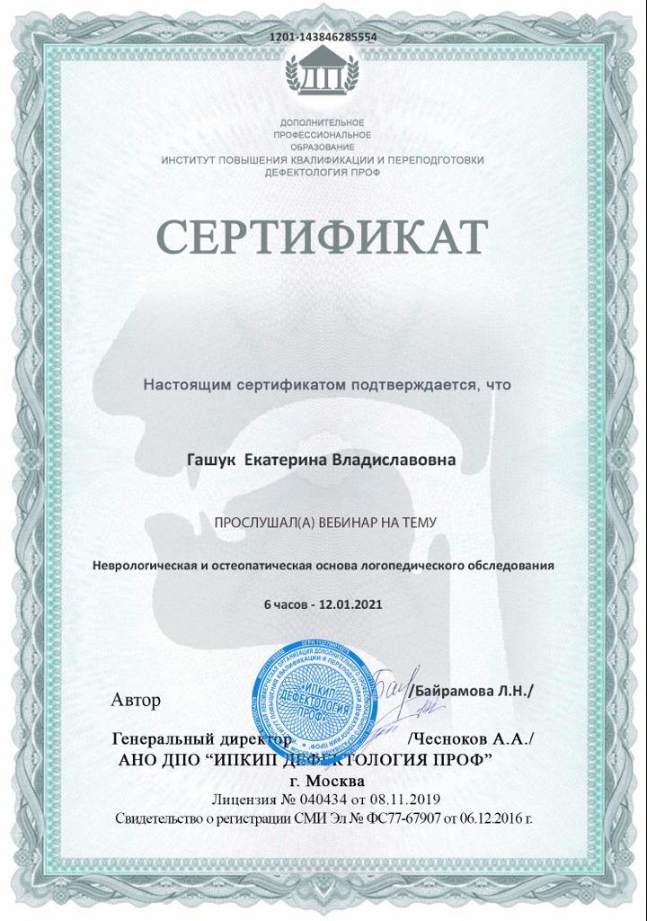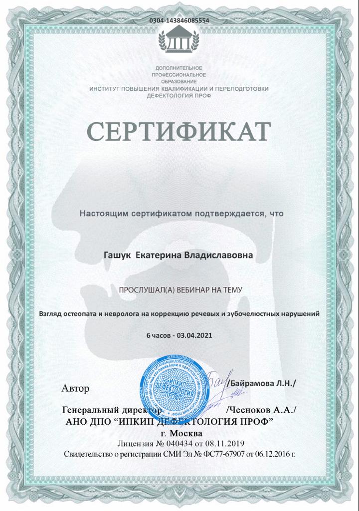2021г — Вебинар «Взгляд остеопата и невролога на коррекцию речевых и зубочелюстных нарушений», Дефектология ПРОФ, Байрамова Л.Н.