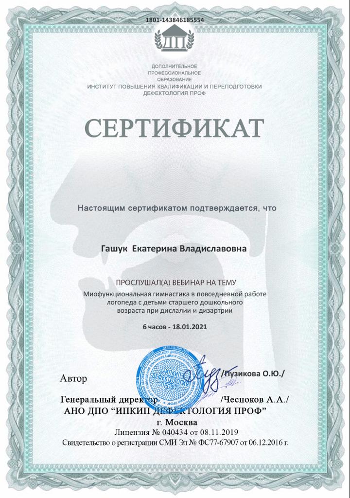2021г — Вебинар «Миофункциональная гимнастика в повседневной работе логопеда с детьми старшего дошкольного возраста при дислалии и дизартрии», Дефектология ПРОФ, Пузикова О.Ю.