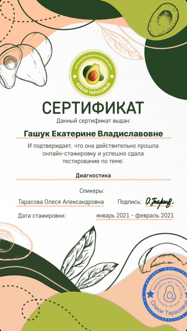 2021г — Онлайн-стажировка «Диагностика», Тарасова О.А.