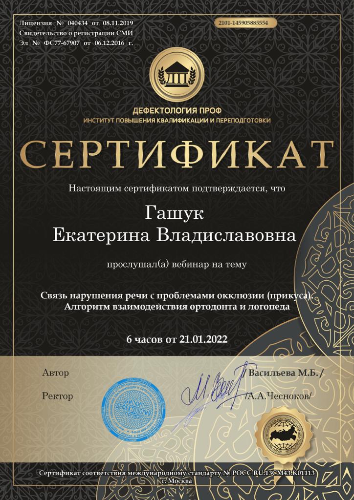 2022г — Вебинар «Связь нарушения речи с проблемами окклюзии (прикуса). Алгоритм взаимодействия ортодонта и логопеда», Дефектология ПРОФ, Васильева М.Б.