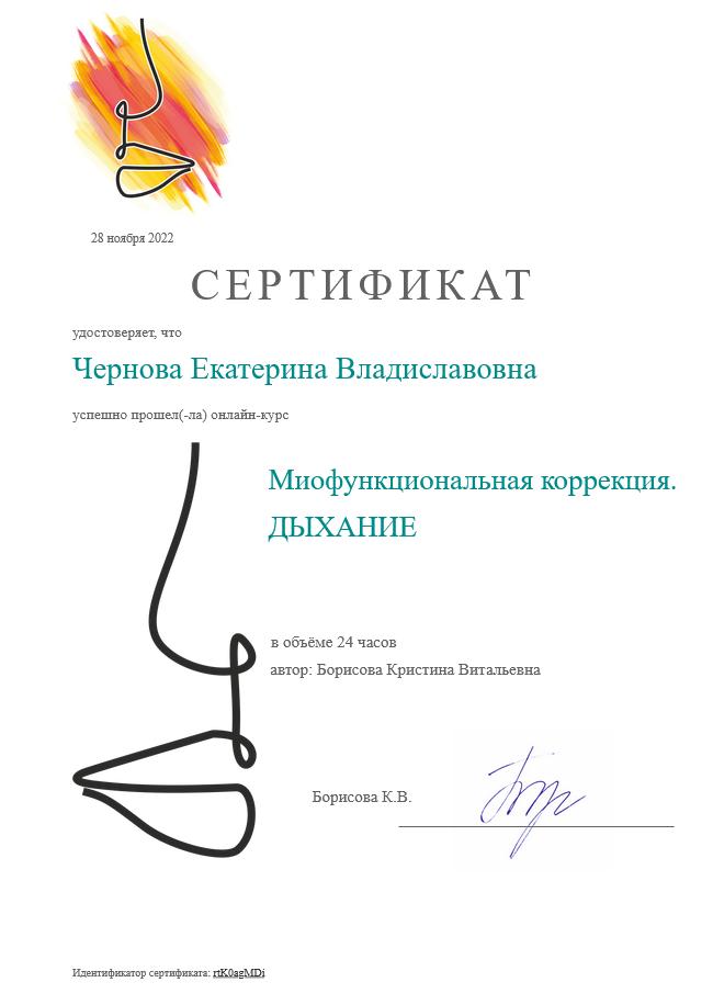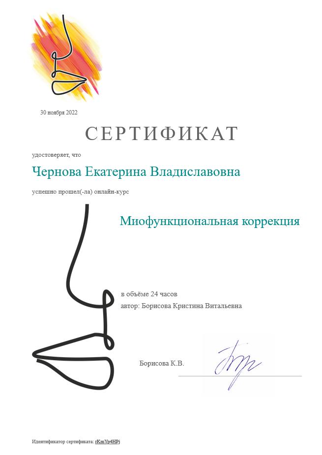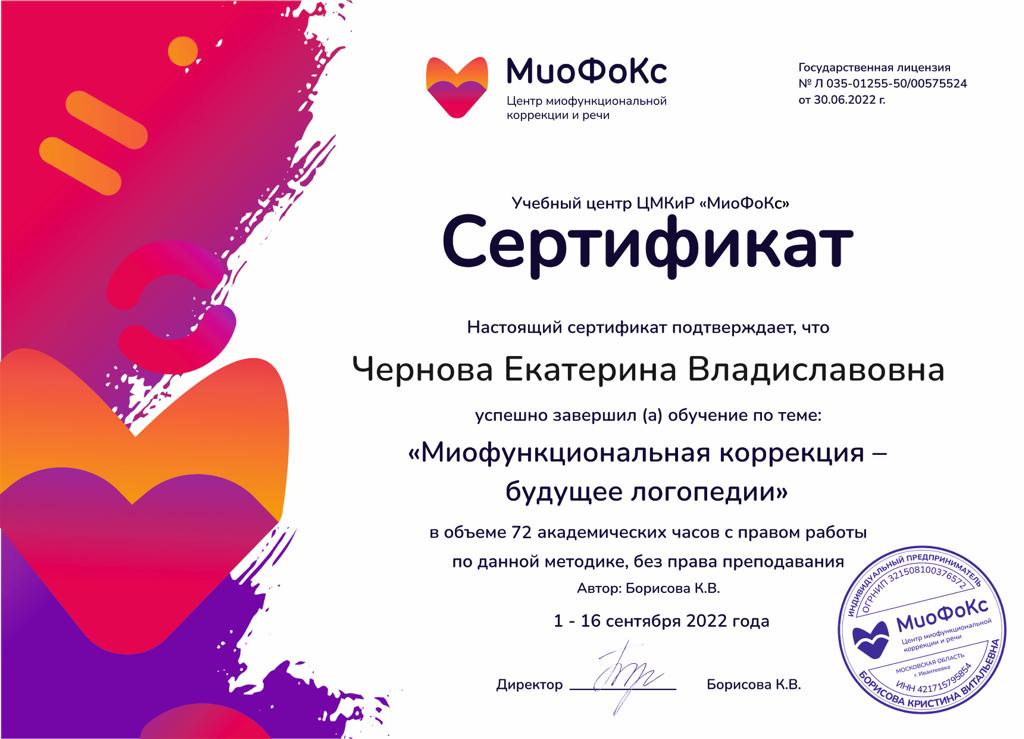 2022г — Онлайн-курс «Миофункциональная коррекция — будущее логопедии», УЦ ЦМКиР «МиоФоКс», Борисова К.В.