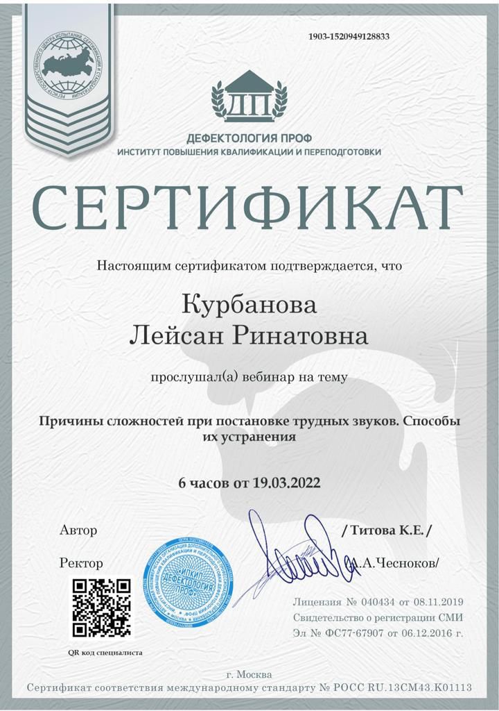 2022г – Вебинар “Причины сложностей при постановке трудных звуков. Способы их устранения”, Дефектология ПРОФ, Титова К.Е.