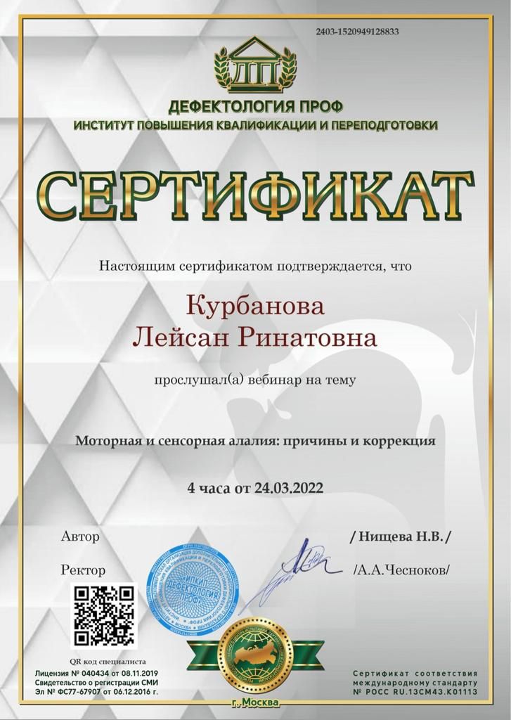 2022г – Вебинар “Моторная и сенсорная алалия: причины и коррекция”, Дефектология ПРОФ, Нищева Н.В.