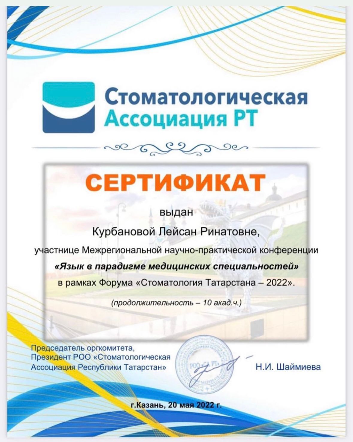 2022г – Научно-практическая конференция “Язык в парадигме медицинских специальностей”, Стоматологическая Ассоциация РТ