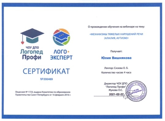 2021г — Вебинар «Механизмы тяжелых нарушений речи (алалия, аутизм)», Логопед Профи, Сизова О.Б.