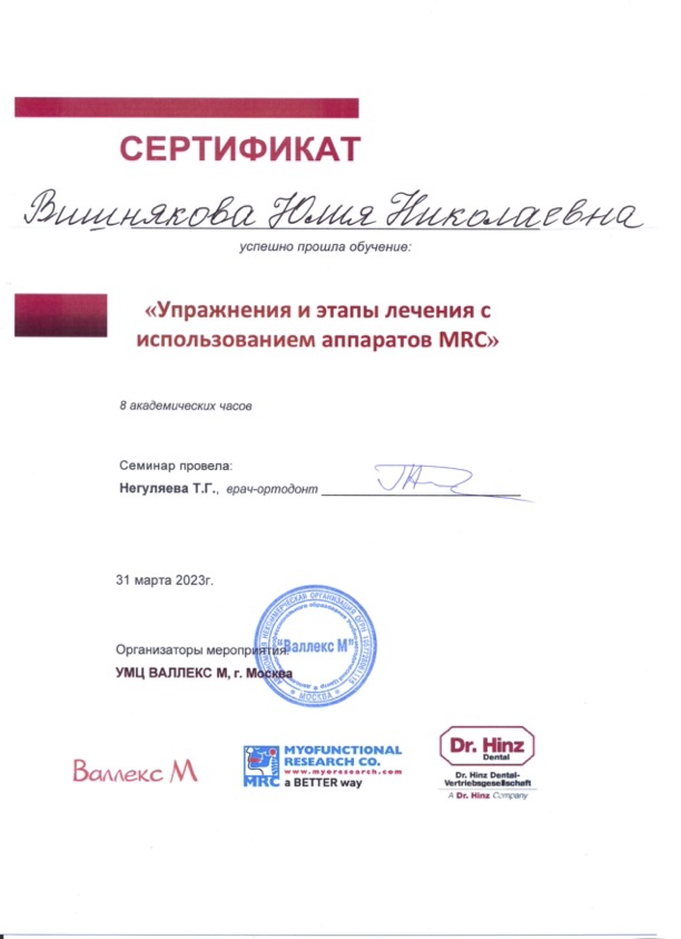 2023г — Семинар «Упражнения и этапы лечения с использованием аппаратов MRC», Валекс М, Негуляева Т.Г.
